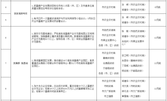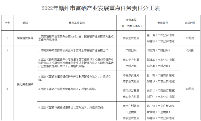 根據方案,我市在2022年通過加強富硒土壤資源保護與開發利用,發揮首批富硒產業示范基地帶動作用,新建高標準富硒產業示范基地50個以上;按照“擴大總量、提檔升級、特色鮮明、示范帶動”的總體要求,結合富硒農業產業發展實際,集中優勢資源,推動建設18個高標準富硒產業園區;突出綠色有機富硒農業資源優勢,出臺獎補政策,重點培育30個集生產、加工、銷售和三產融合于一體的富硒農業示范龍頭企業;完成贛州市富硒農業與產品開發技術創新中心、贛南富硒研究院建設,啟動富硒功能產品研發、富硒功能農業大數據中心建設,開展硒與動物和人體健康國際計劃合作研究,不斷提高新技術、新產品示范推廣能力和科研成果轉化率,通過硒科技創新驅動硒產業高質量發展;組織富硒農產品參加各地展示展銷活動,推廣贛南富硒;實施強農戰略,引進策劃公司對贛南富硒進行整體包裝策劃等內容,做好硒資源的有效保護和合理利用工作。