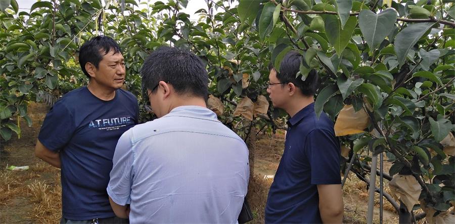 在寧晉縣,雨佳果樹種植專l業(yè)合作社負(fù)責(zé)人霍總向羅總和于總一行詳細(xì)介紹了果園品種分布,分批上市時間。雨佳合作社是該市智慧農(nóng)業(yè)應(yīng)用示范點(diǎn),產(chǎn)品多次獲得京津冀果品爭霸賽金獎。在霍總的帶領(lǐng)下,雨佳合作社在通過歐盟質(zhì)量認(rèn)證體系基礎(chǔ)上又與中國地質(zhì)大學(xué)(武漢)國際硒科學(xué)與產(chǎn)業(yè)發(fā)展研究院合作,將有機(jī)、富硒、酵素三效合一,研發(fā)了富硒梨果產(chǎn)品,已經(jīng)連續(xù)兩年獲得第三方機(jī)構(gòu)的“富硒產(chǎn)品認(rèn)證證書”。去年有200余mu富硒梨果被香港某大型超市提前批量訂購。非常巧合的是,今年香港客商也在同一天來到了霍總的富硒梨基地,商定今年的采購計劃。